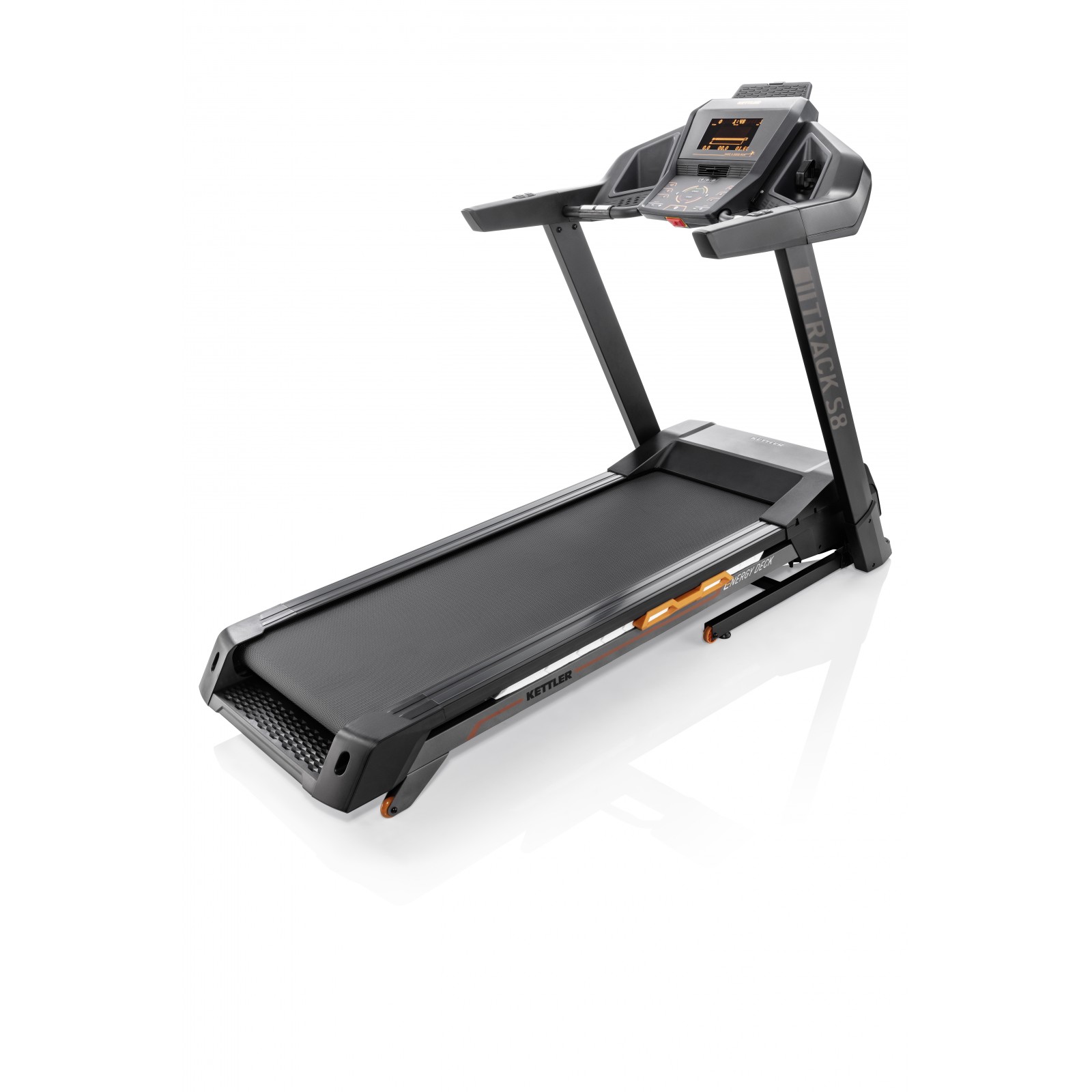 Med det helt nye dæmpningskoncept er Kettler løbebånd Track S8 et meget ledskånende løbebånd. Det nye ”Kettler Energy Deck” består af et energitilbageførende skum, der optager den effektive kraft fra hvert eneste skridt, dæmper den og giver den tilbage til løberen. Det skåner på den ene side muskler, sener og ledapparat, og giver dig på den anden side energien tilbage og forlænger dermed træningsvarigheden.